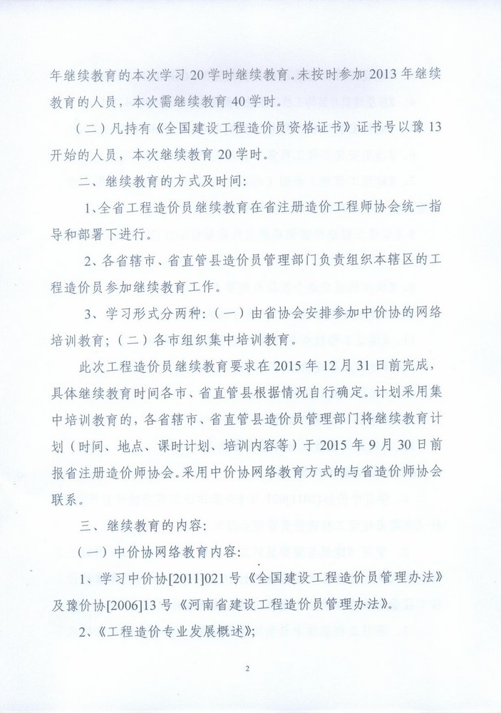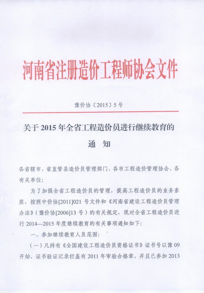 • 關于2015年全省工程造價員進行繼續教育的通知
