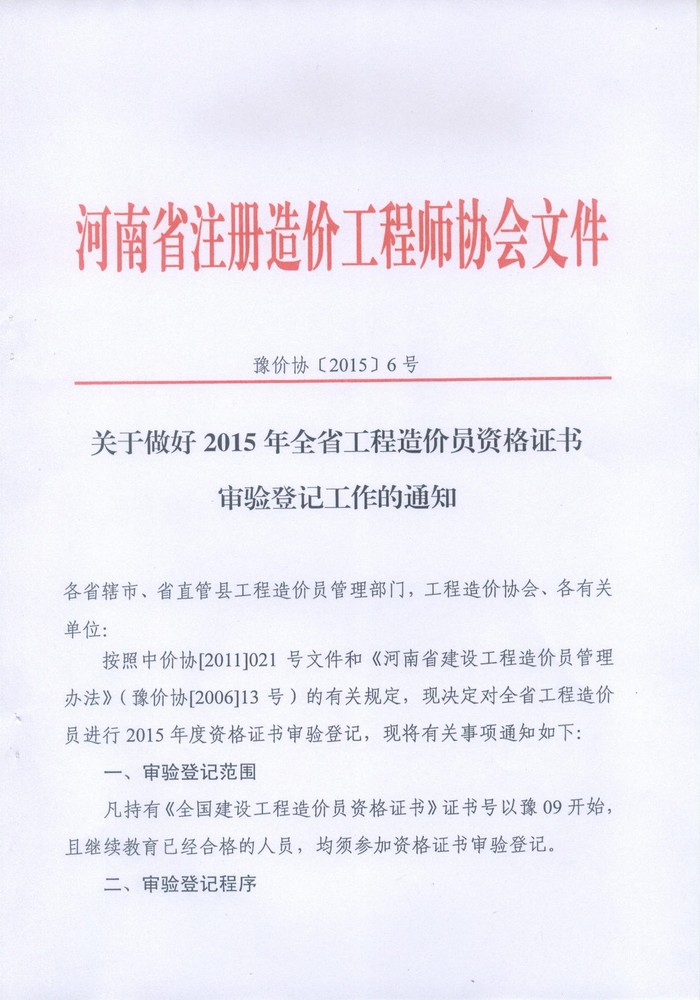 • 關于做好2015年全省工程造價員資格證書審驗登記工作的通知