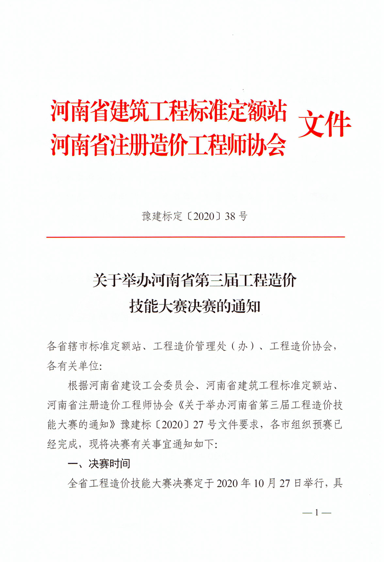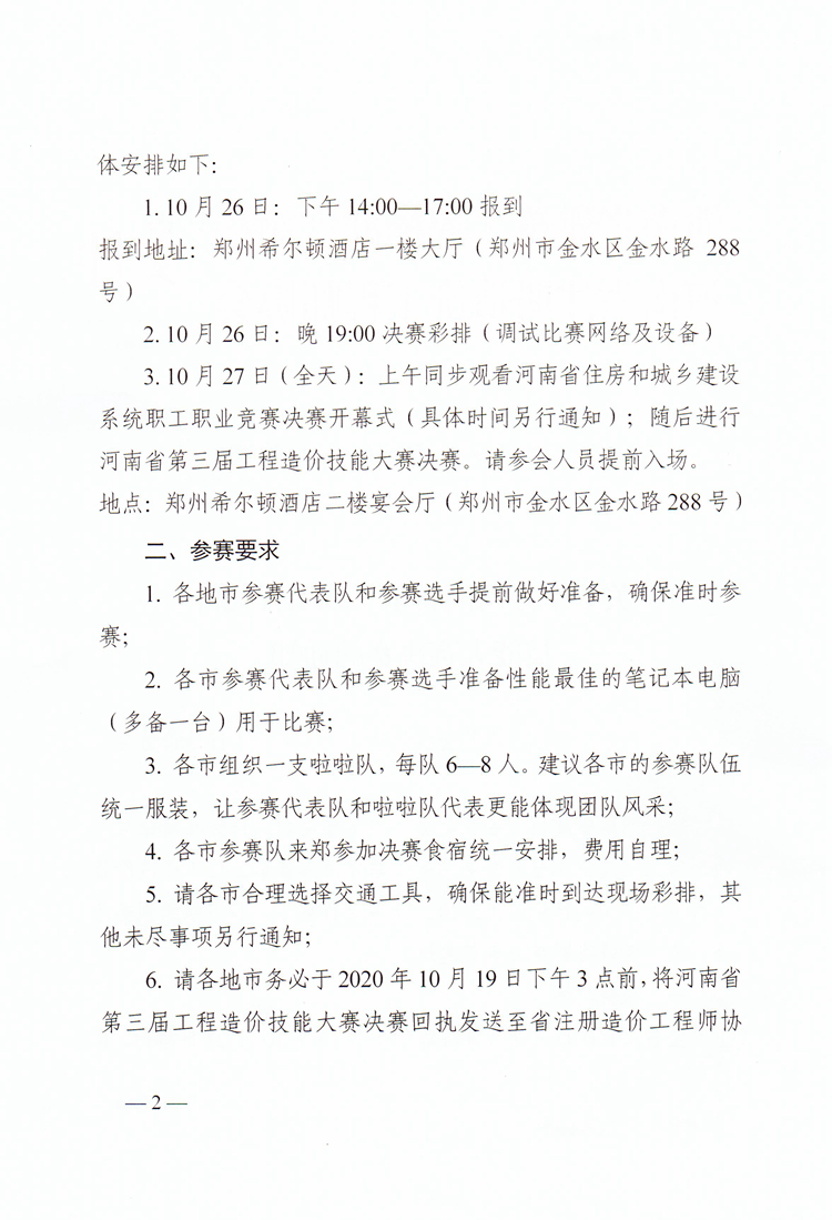 河南省第三屆工程造價技能大賽決賽賽程安排