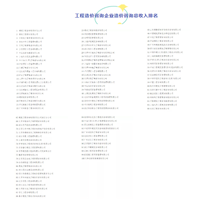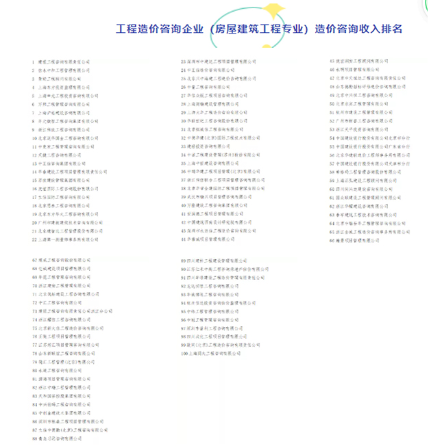 近日,中國建設(shè)工程造價管理協(xié)會公示《2020年工程造價咨詢企業(yè)造價咨詢收入排名》。