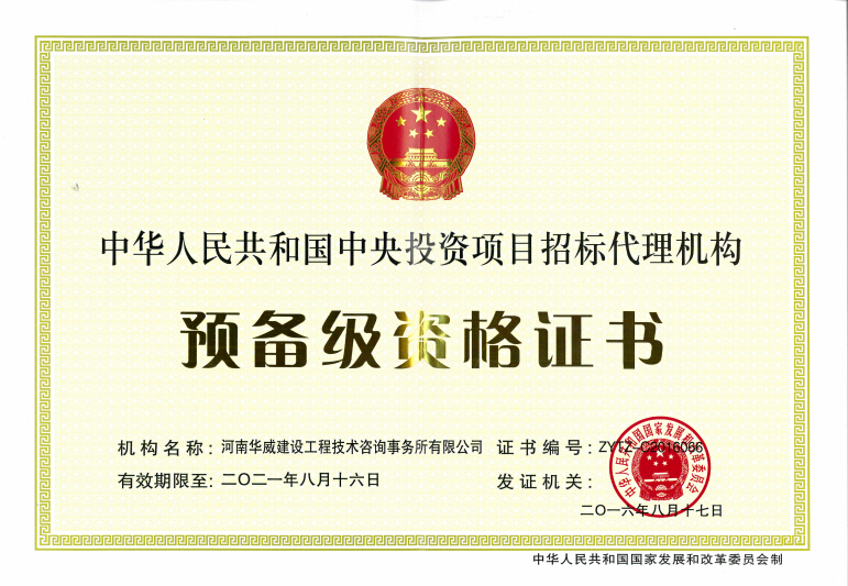 中央投資項目招標代理預備級資質